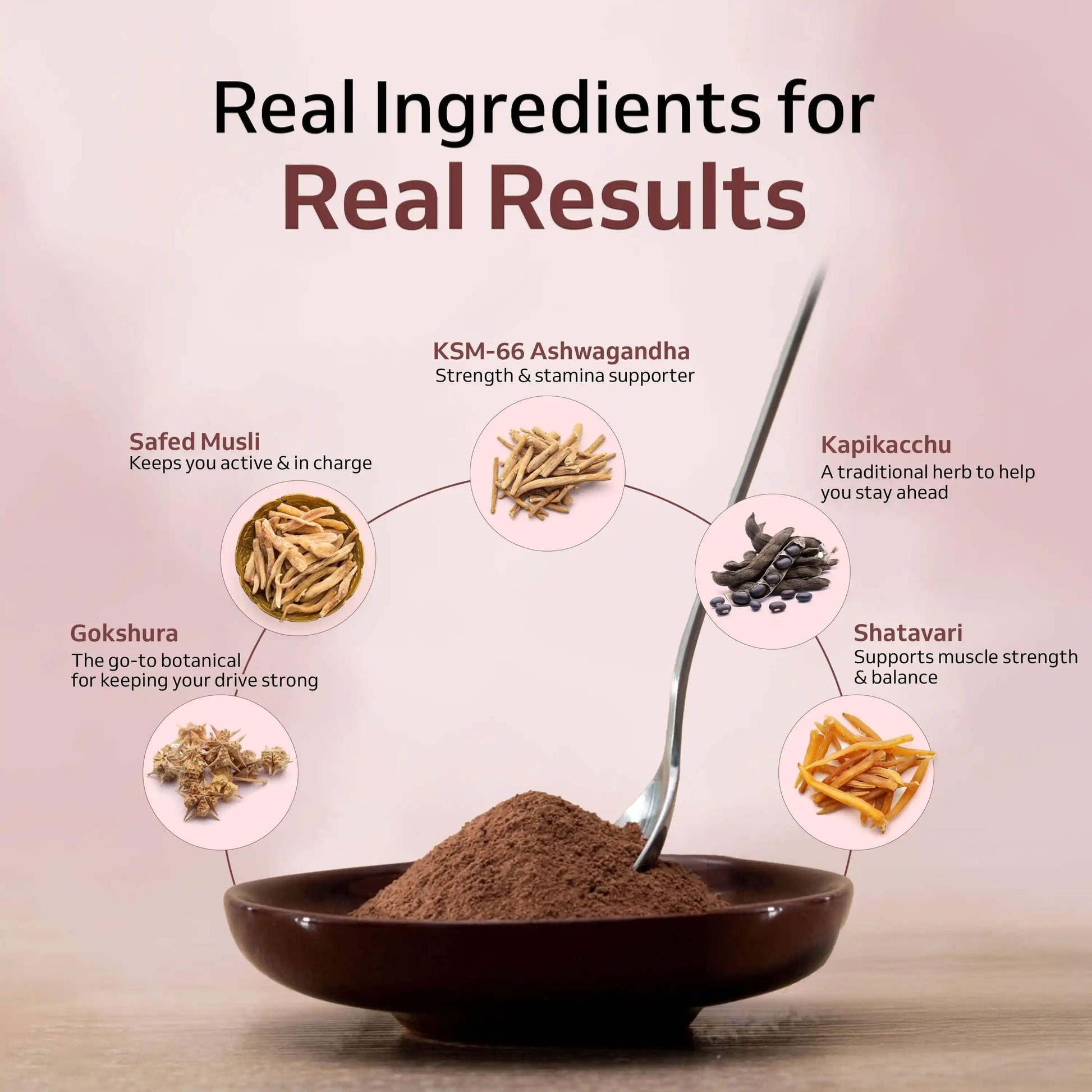 Looking for a way to push your limits and unlock peak performance? Ashwa Musli Power Max is crafted to naturally support strength, stamina, and endurance. Featuring KSM-66 Ashwagandha, a premium extract known for its potency, this powerful blend includes Kapikachhu, Gokshura, Shatavari, and Safed Musli, all working together to fuel energy levels, promote muscle strength, and aid in recovery. Whether you're an athlete, fitness enthusiast, or simply looking to enhance daily performance, this formula is designed to help you stay at your best.